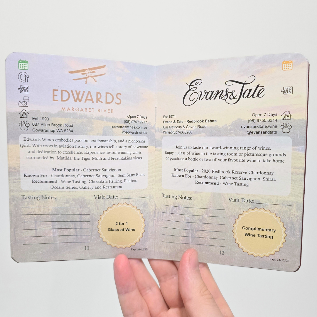 The Margaret River Wine Passport is a custom designed, printed Passport packed full of information about local wineries and cellar doors throughout the region, as well as a venue checklist, winery hopping suggestions, online discounts and more!