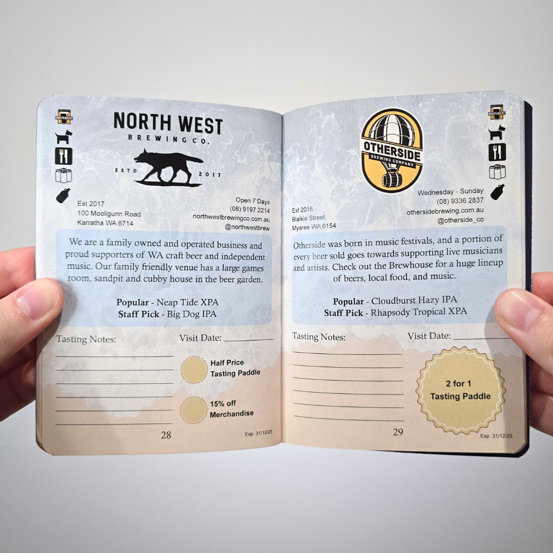 The Western Australia Craft Beer Passport is a custom designed, printed Passport packed full of info about local breweries and craft beer venues throughout the state, as well as brewery hopping suggestions, online discounts and more!